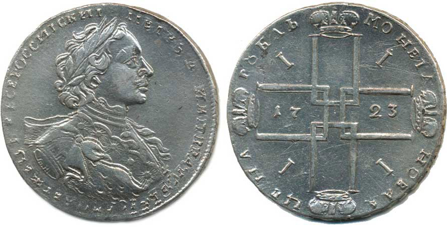 Rubl 1723 OK, Moskva "KOPIE" jako Bitkin 2.882, Uzd.606 imitace Ag 27,596 g