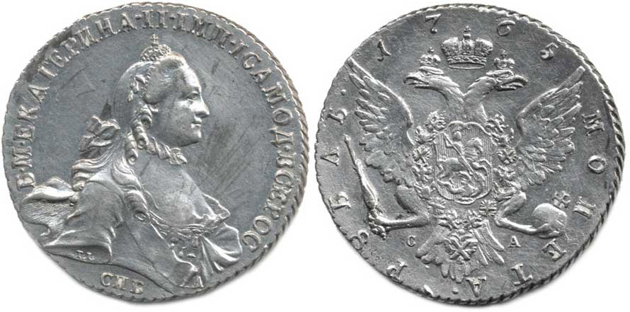 Rubl 1765 SPB / CA "KOPIE" jako Cr. 67 imitace Ag 23,64 9 g