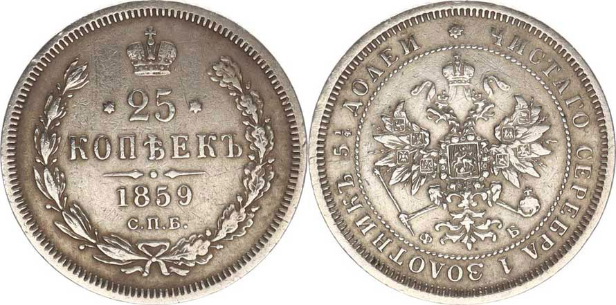25 Kopějka 1859 SPB/FB Btkin 2.132; Uzd. 1757