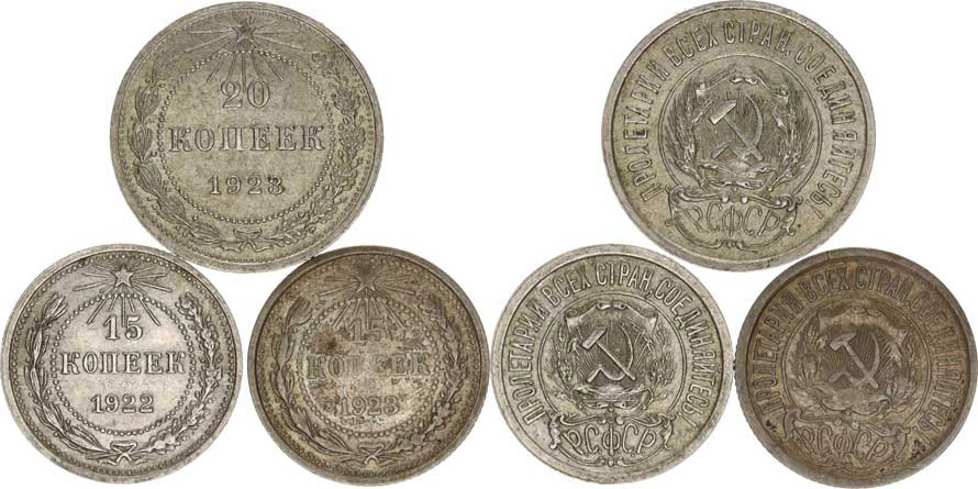 20 Kop. 1923; +15 Kop. 1922, 1923 "R" 3 ks