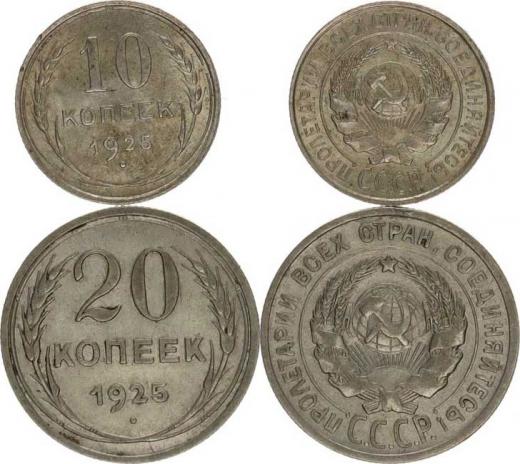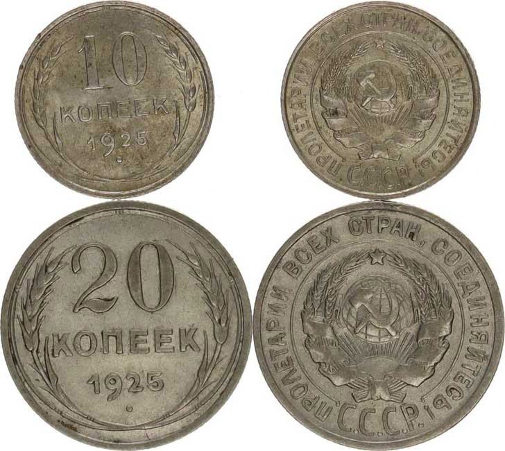 10 Kopějka 1925; +20 Kop. 1925 2 ks