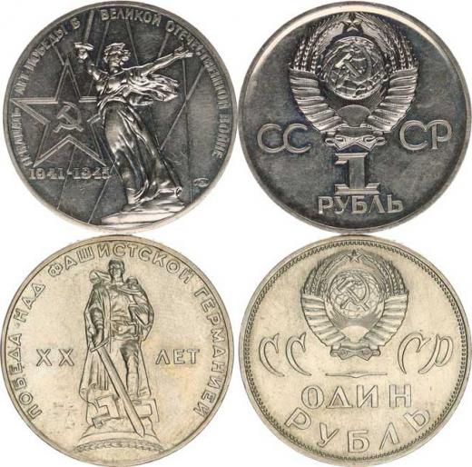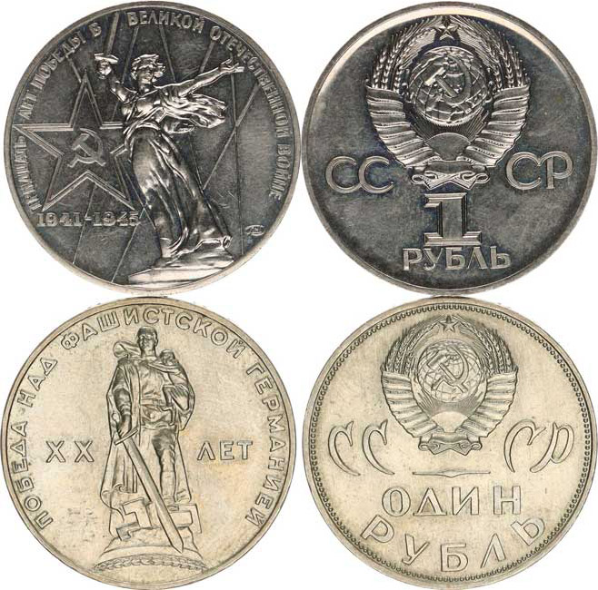 1 Rubl 1965 - 20. výr. porážky fašizmu Y. 135,1 1 Rubl 1975 - 30. výr. porážky fašizmu Y. 142,1 2 ks