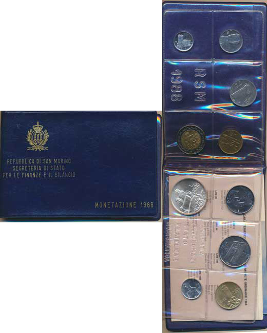 Ročníková sada mincí 1988 (1,2,5,10,20,50,100,200,500,1000 Lire) KM MS39 (KM 218-227) orig. balení +certifikát 10 ks
