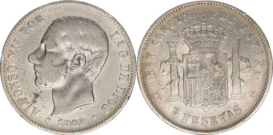 5 Pesetas 1885 MS-M Y.76