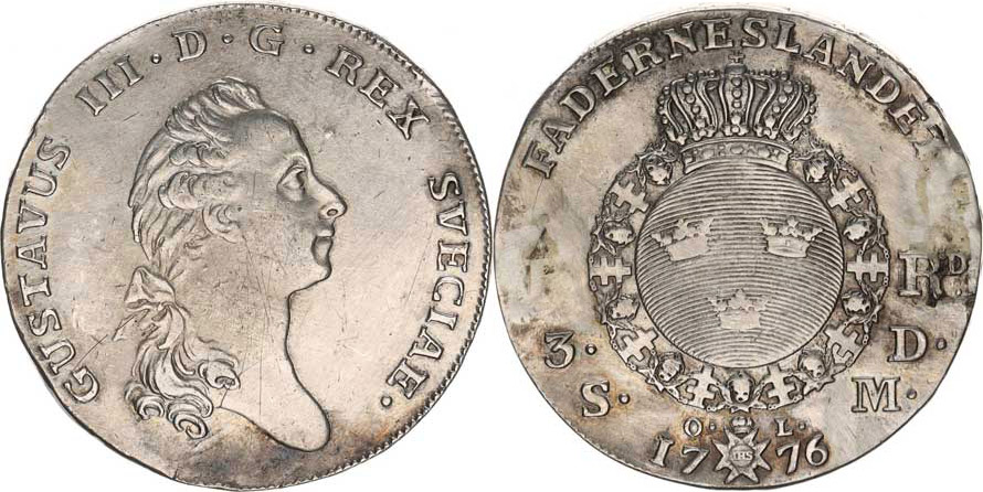 1 Riksdaler 1776 OL KM 514 "R"_ v rv. odstr. spona