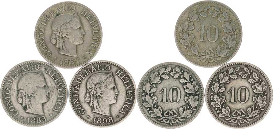 10 Rappen 1880, 1883, 1898 vše B 3 ks