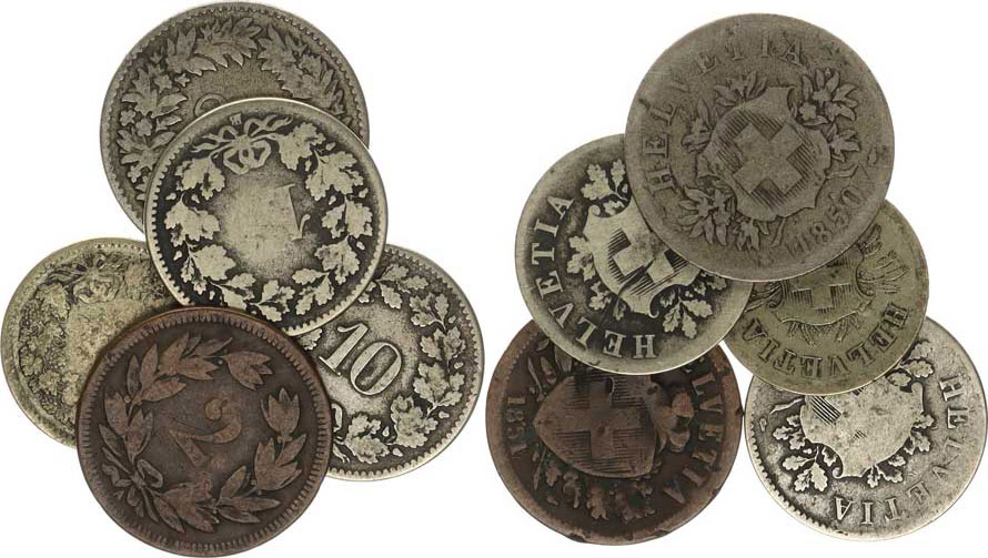 20 Rappen 1850 BB, +10 Rappen 1850 BB(2x), +5 Rappen 1850 BB, +2 Rappen 1850 A "R" 5 ks