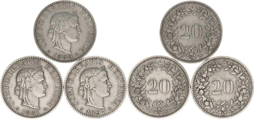 20 Rappen 1881, 1897, 1899 vše B 3 ks