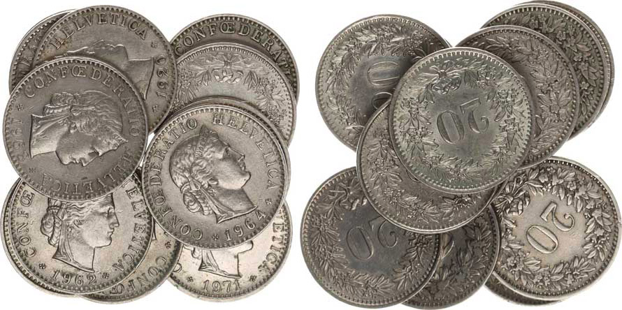 20 Rappen 1881, 1983, 1920, 1943, 1962, 1963, 1964, 1969, 1971, 1 980, 1981, 1994 12 ks