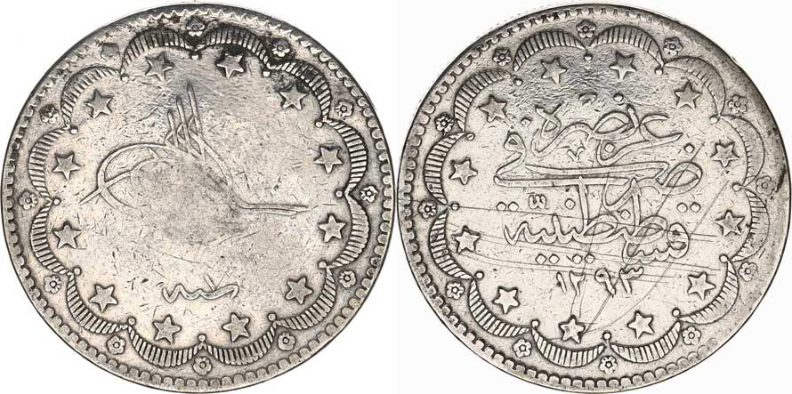 20 Kurush AH 1293 rok 1 KM 722 Ag 830 23,442 g_rysky