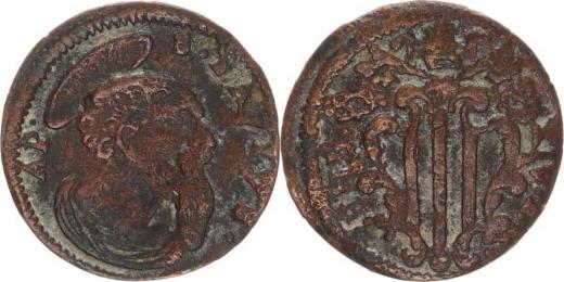 Quatrino (1747), Papežský znak / Hlava světce zprava Cu KM 138