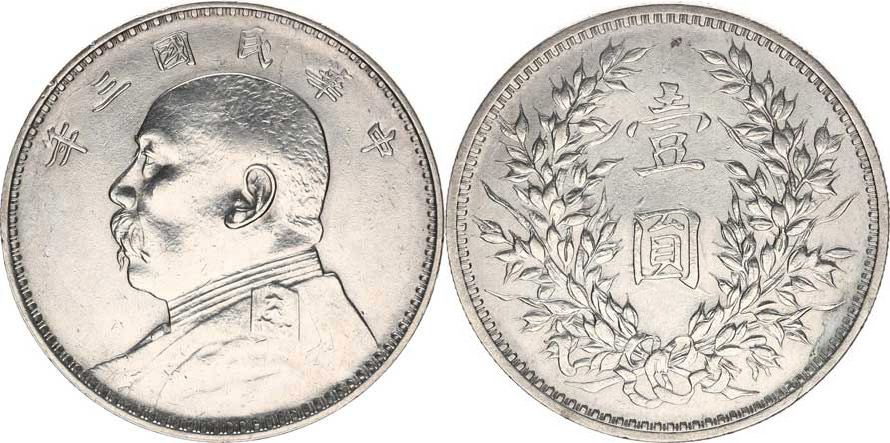 1 Dollar(yuan) rok 3(1914) Y. 329 - vroubkovaná hrana 26,836 g