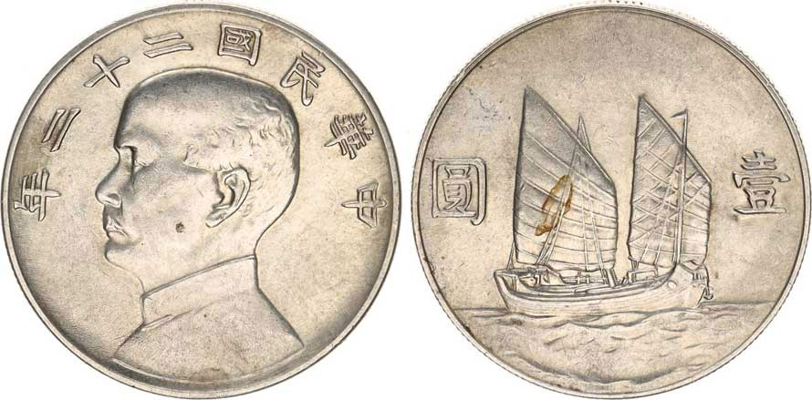 1 Dollar (yuan) rok 22(1933) - plachetnice "sběratelská ražba"