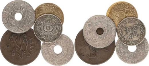 1 Piastre 1925; +Maroko - 25 Centimes 1921; +Syrie - 5 Piastres 1926; +Egypt - 10 Para AH 1277, 5/10 Qirsh AH 1293 5 ks