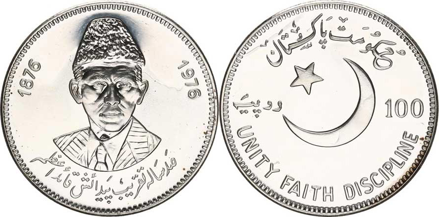 100 Rupees 1976 - Mohammad Ali Jinnah Ag 925 20,44 g "RR" KM 41; Schön 46