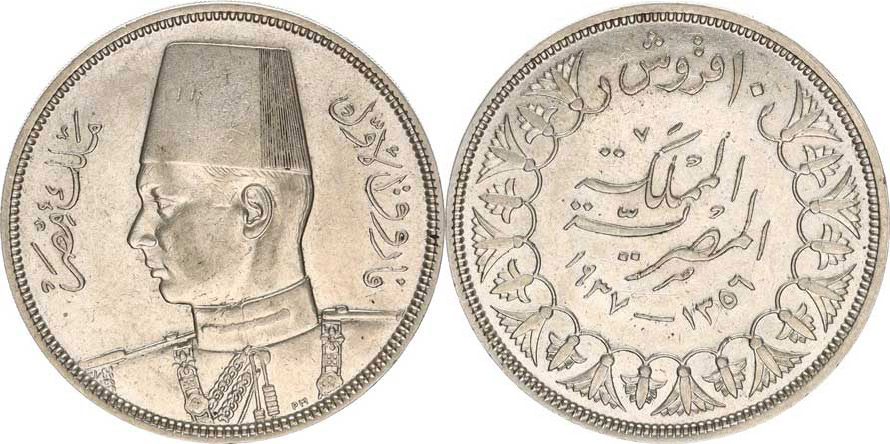 10 Piastres AH 1356 (1937) KM 367 Ag 833 14,00 g