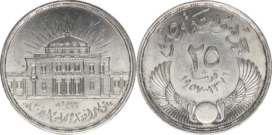 25 Piastres AH 1380 (1960) - 3. výr. národního shromáždění KM 400 Ag 720 17,5 g_úhoz