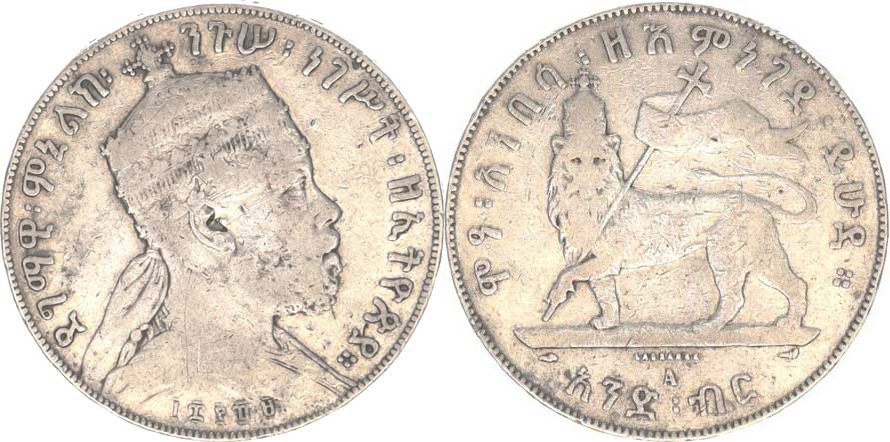 1 Birr EE 1889 A (1897 AD) KM 5 Ag 835 27,89 g
