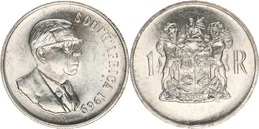 1 Rand 1969 - South Africa KM 80,1 Ag 800 15,00 g