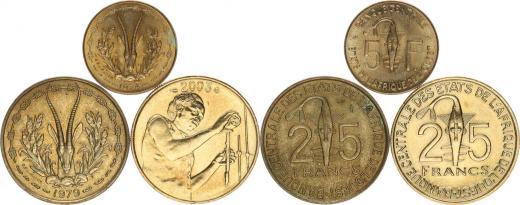 25 Francs 1979, 2003; +5 Francs 1974 KM 5, 9, 2a 3 ks