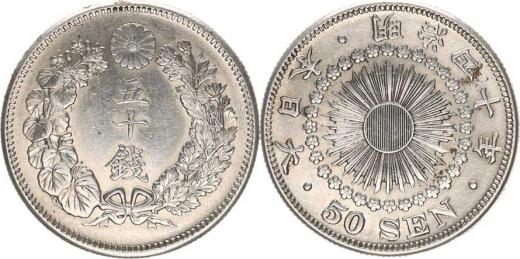 50 Sen rok 40 (1907) Y. 31 Ag 800 10,10 g