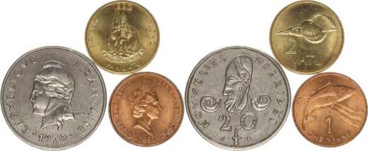 20 Francs 1970; +Vanuatu - 2 Vatu 1990; +Sv. Helena +Ascension - 1 Penny 1991 3 ks
