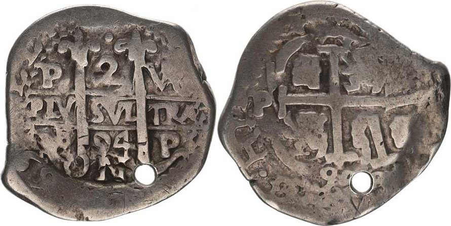 2 Reales 1694 P-VR Ag 5,966 g "R" KM 24; KM R25 _dírka