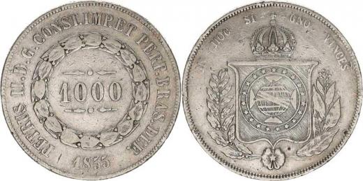 1000 Reis 1855 KM 465 Ag 917 12,75 g_dr. hr., tém.