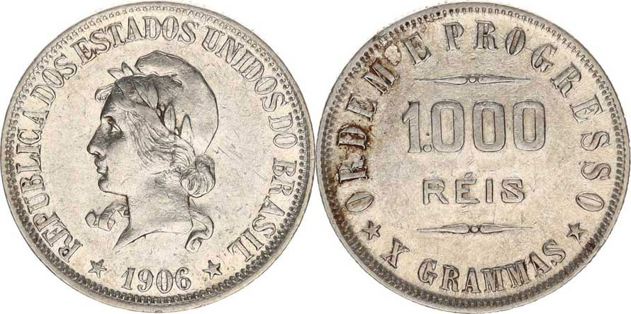 1000 Reis 1906 Ag 900 KM 507 "R"