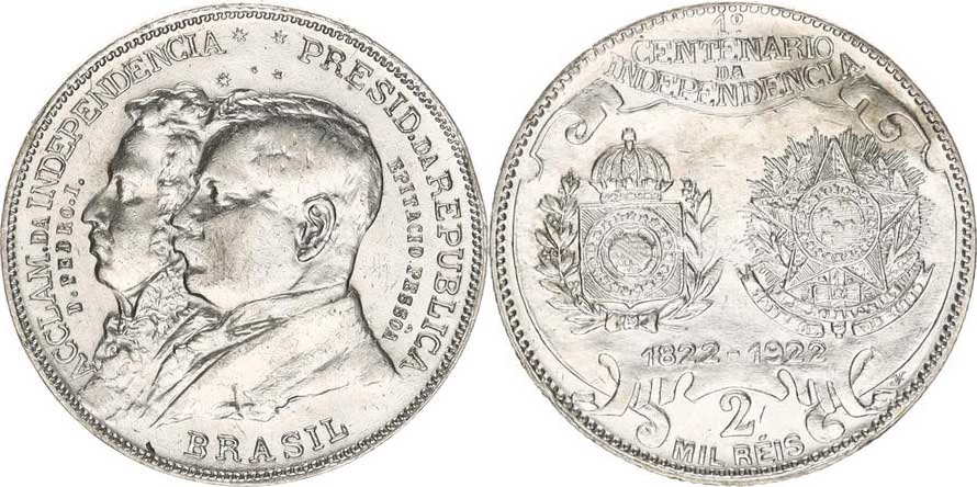 2000 Reis b.l. (1922) - 100. výr. nezávislosti KM 523 A g 900 7,90 g_tém.