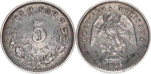 5 Centavos 1903 Cn Q KM 400 Ag 903 1,34 g