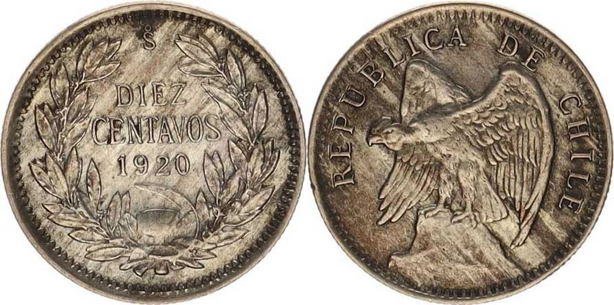 10 Centavos 1920 Ag 400 1467 g KM 156.2a