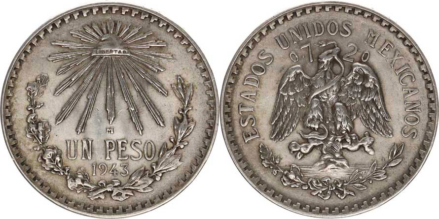 1 Peso 1943 M KM 455 Ag 720 16,6 g