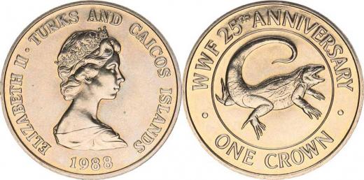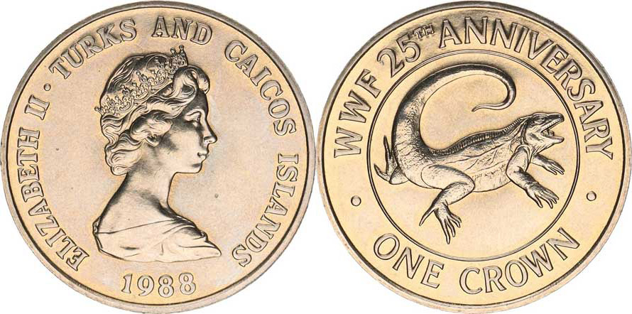 1 Crown 1988 - 25. výročí WWF, leguán KM 64 CuNi
