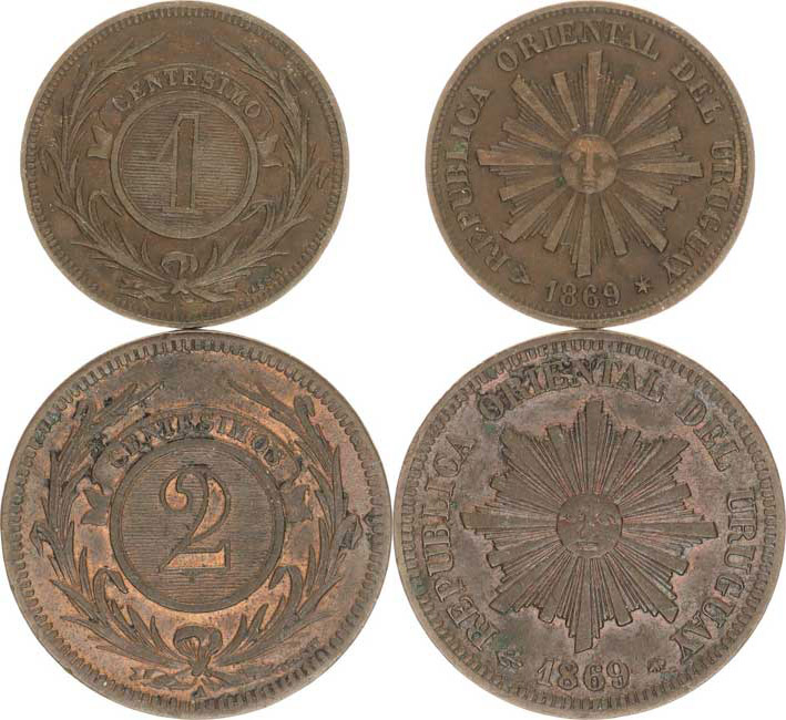 1 Centesimo 1869 H, +2 Centesimo 1869 A 2 ks