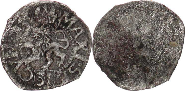 Bílý peníz 1575, Č.Budějovice-Gebhart MKČ 266 var.: MAXI. SE. "R" 0,247 g_excentr.