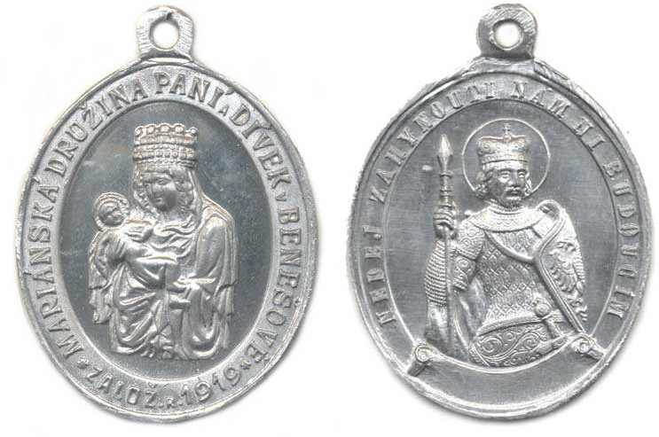 Benešov - Mariánská družina paní a dívek založ. 1919. Av.: Panna Maria Stroboleslavská, opis / Postava sv. Václava do pasu, opis Al 29x35 mm orig. ouško Přibil neuvádí !