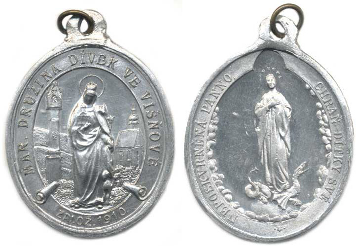 Višňová (okr. Příbram) - Mariánská družina založ. 1900. Av.: Sto jící sv. Anežka, opis / Panna Maria Immaculata, opis Al 29x3 4 mm orig. ouško Přibil neuvádí !