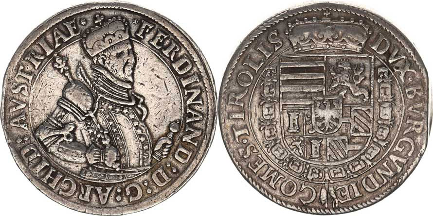 2 Tolar tlustý b.l., Tyroly, Hall 57,42 g (4,84 výška stř.) Davenport 8096 "RR"_kraj. stř. z jedné strany