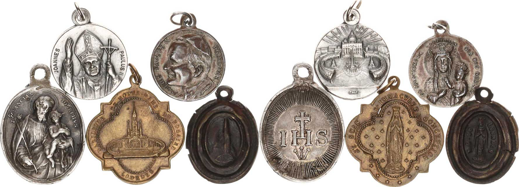 Konvolut 5 kusů svátostek - (Lurdy 2 ks, sv. Josef, Jan Pavel II. Čenstochová, Jan Pavel II. Řím)