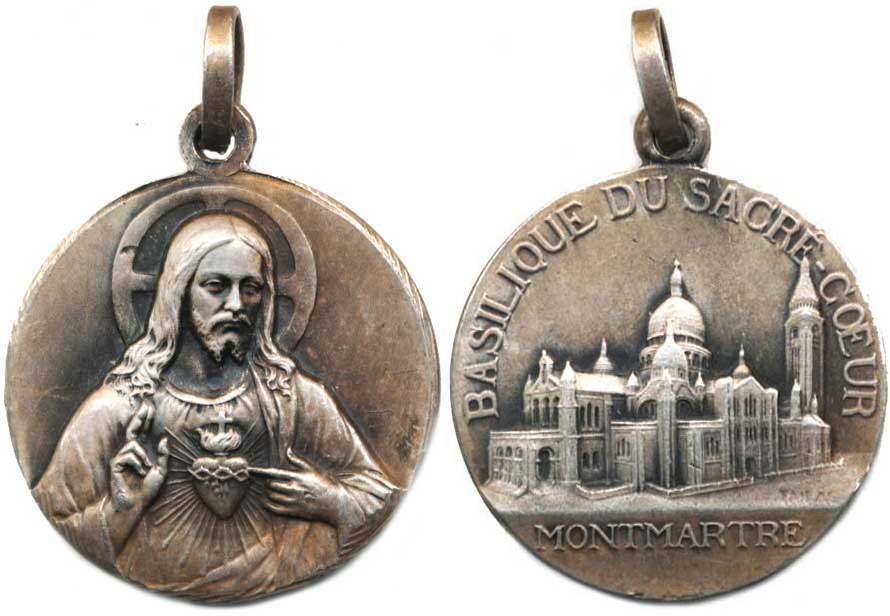 Francie - Paříž, Bazilika Sacre Coeur. Av.: Pohled na baziliku, opis, v úseči nápis / Žehnající Ježíš Kristus nové stříbro 23 mm orig. ouško +závěs