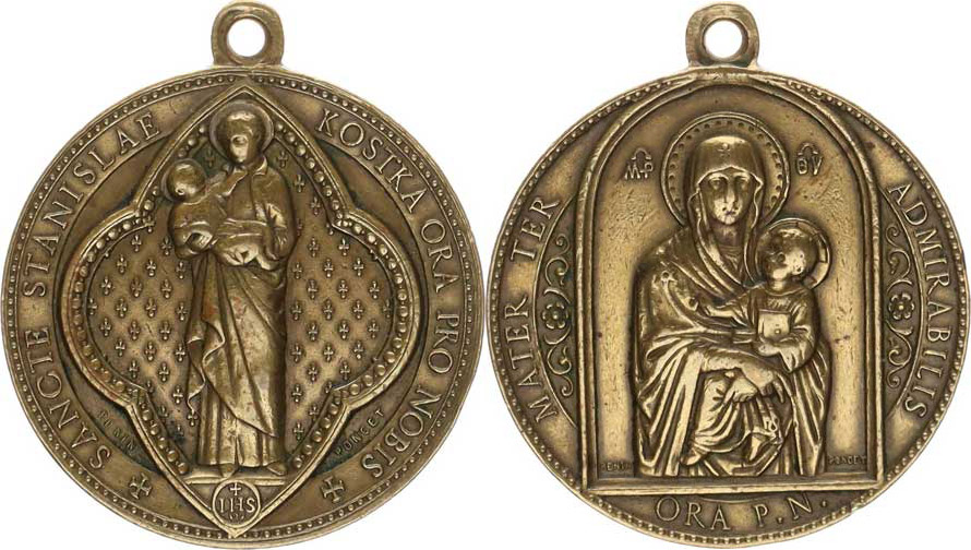 Jezuité - A: Svatý Stanislav Kostka / R: Obraz Santa Maria Maggio re (Panna Marie Sněžná) sign.: PENIN-POBCET mosaz 32 mm