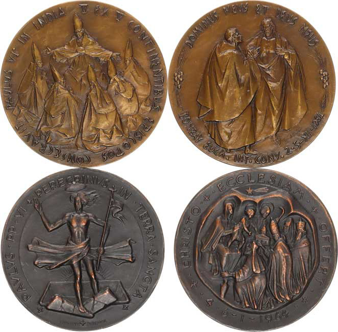 Vatikán - Paulus VI., Medaile 1964 1/ Do Svaté země; +2/ Do Indie na Eucharistický kongres signováno bronz 44 mm 2 ks