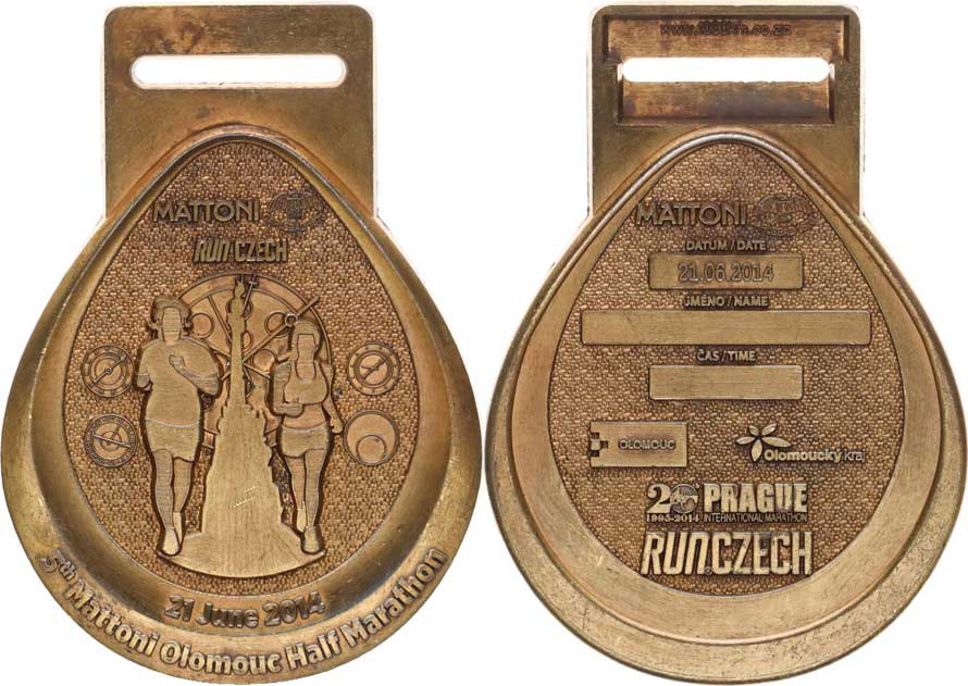 Olomouc - 5. Mattoni 1/2 Maraton Olomouc 21.7.2014 mosaz tvaru kapky 56x80 mm PMP I-337_bez stuhy