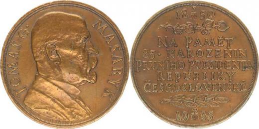 T.G.Masaryk, 85. narozeniny 1935 bronz 50 mm Floss 45 b