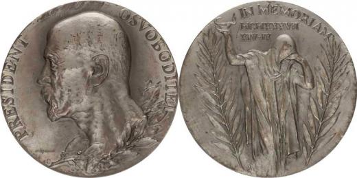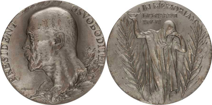 T.G.Masaryk, IN MEMORIAM 1937 Ag 80 mm 193,85 g Flos 54a původní etue