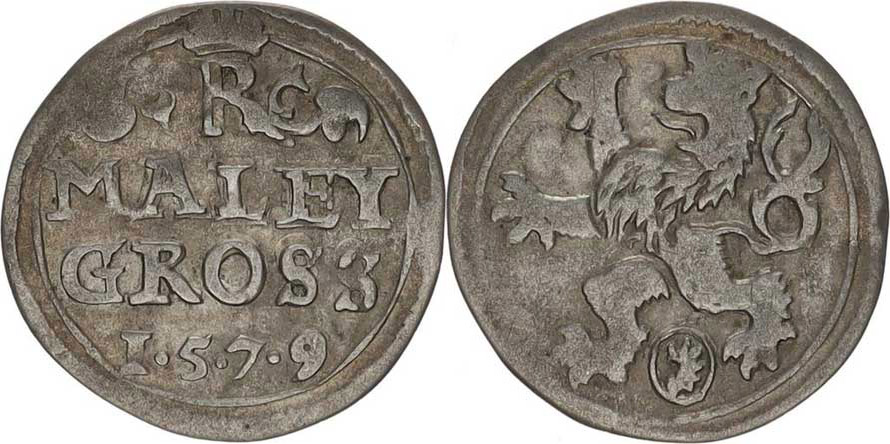 Malý groš 1579, K.Hora-Šatný, líc bez opisu HN 1a/1 "RR" 0,703 g