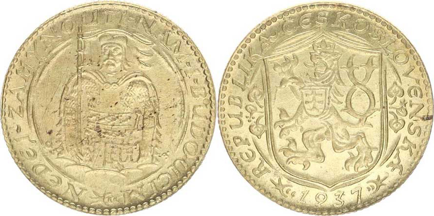 Dukát 1937 - sv. Václav odražek - žlutý kov 3,18g