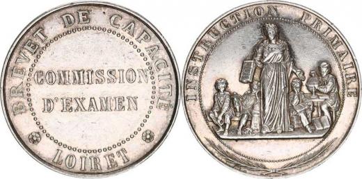 Loire - Medaile zkušební komise základního vzdělání, A: Alegorie vzdělávání, opis / R: Nápis ve dvou řádcích, opis Ag 32 mm 1 2,472 g
