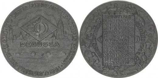 Frankfurt am Main - Kalendářová medaile firmy DEGUSSA na rok 1942 sign.: PRINZ ražebna Wien Zn 40 mm 17,62 g